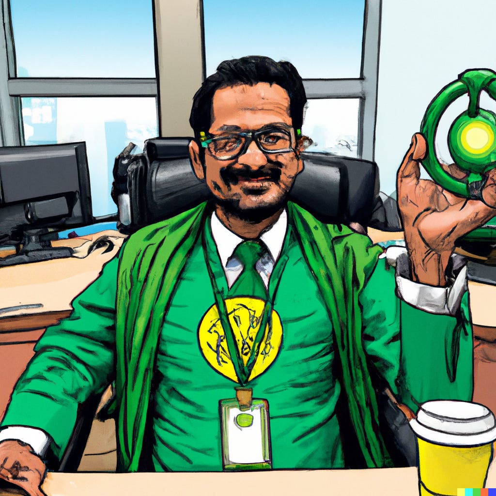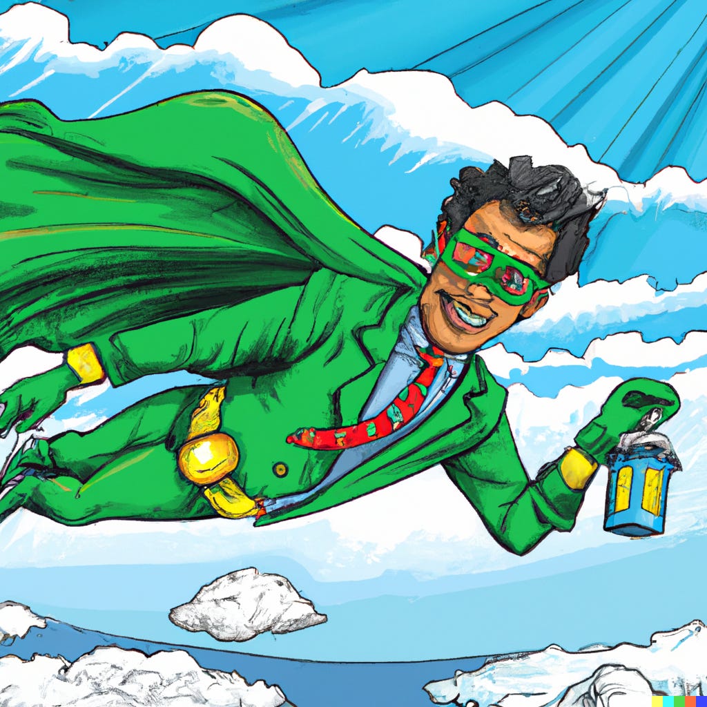 Before starting, see below the results of my attempt to generate a cover for my Green Lantern Hypothesis post using DALL-E 2 in November 2022. The idea was to create a comic book-style image of a CADE official wielding a power ring, but I guess I have failed…